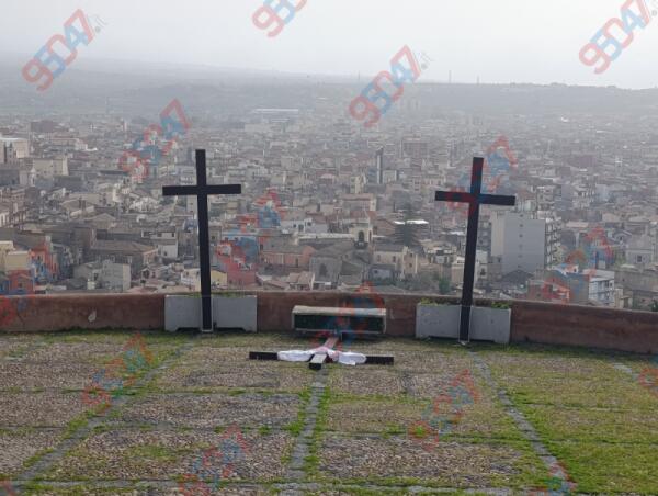 Paternò, crolla la croce sulla scalinata storica: vento sotto accusa, ma resta il dubbio