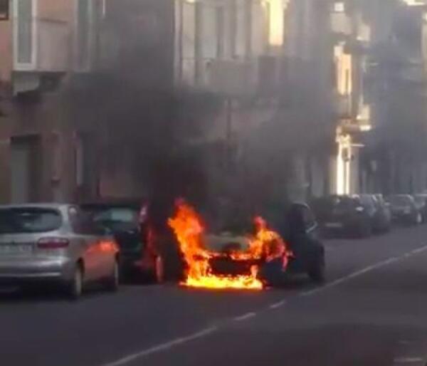VIDEO - A fuoco un'auto che stava procedendo lungo via Giovan Battista Nicolosi