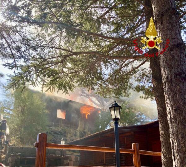 INCENDIO A RAGALNA: A FUOCO CHALET A PIANO VETORE - ETNA SUD