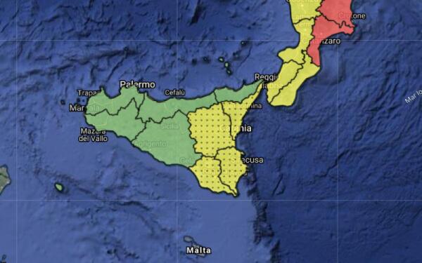 ALLERTA GIALLA PER LA GIORNATA DI DOMANI IN PROVINCIA DI CATANIA