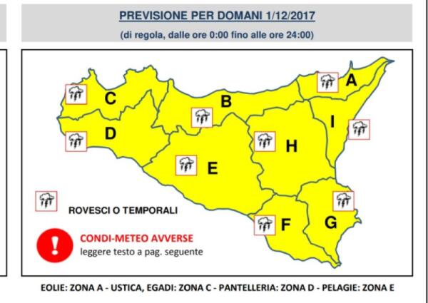 DOMANI "ALLERTA GIALLA" IN TUTTA LA SICILIA