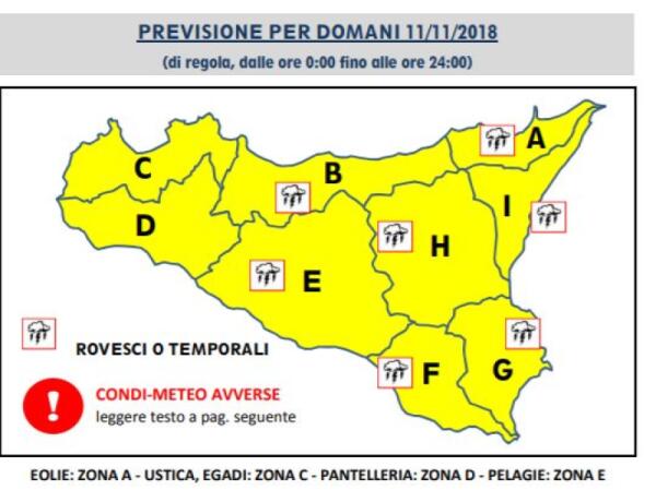 DOMANI ALLERTA GIALLA PER LA SICILIA