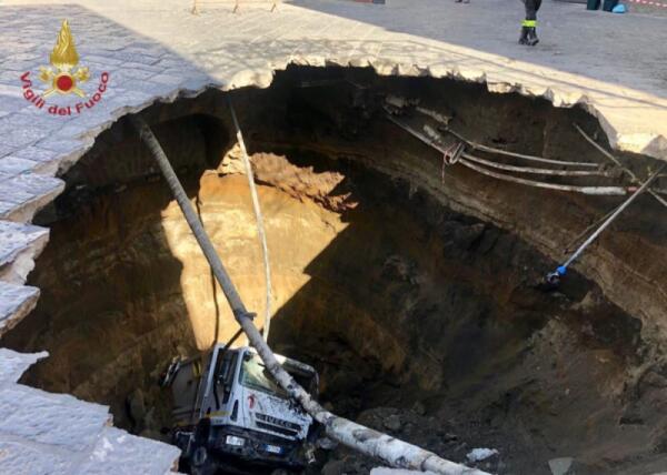 VORAGINE NEL NAPOLETANO, PRECIPITA UN CAMION DEI RIFIUTI CON L'AUTISTA