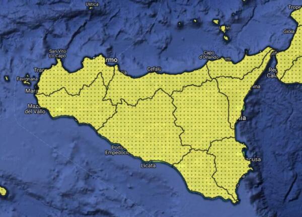 METEO: ALLERTA GIALLA PER TUTTA LA SICILIA PER LA GIORNATA DI DOMANI