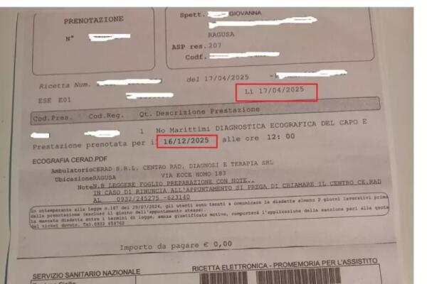RAGUSA, ECOGRAFIA URGENTE PRESCRITTA PER SOSPETTA PATOLOGIA TIROIDEA: L’ASP FISSA VISITA TRA OTTO MESI