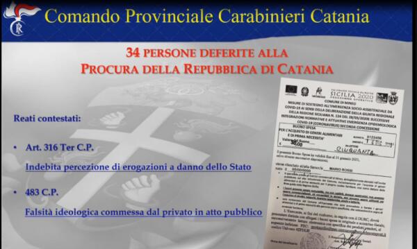 MINEO. TRUFFAVANO IL COMUNE PER FRUIRE DEI “BUONI SPESA”, MA PERCEPIVANO REM E NASPI. 34 PERSONE DENUNCIATE