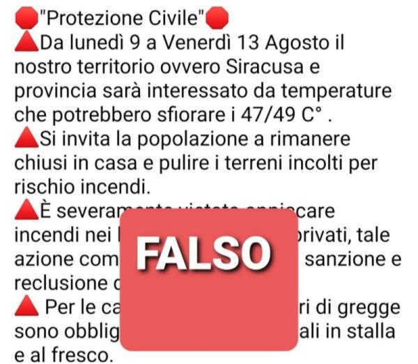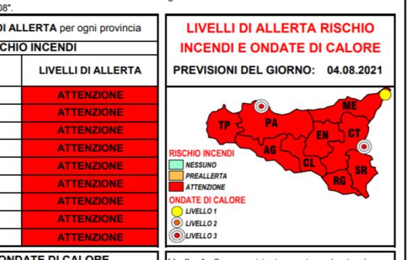 METEO: ALLERTA ROSSA DOMANI PER ONDATE DI CALORE CON OLTRE 40 GRADI E RISCHIO INCENDI ELEVATO IN TUTTA LA SICILIA