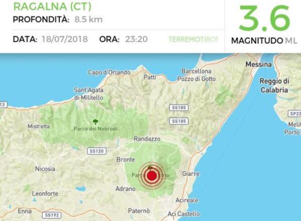 SCIAME SISMICO CON EPICENTRO RAGALNA, LA SCOSSA PIÙ FORTE DI MAGNITUDO 3.6
