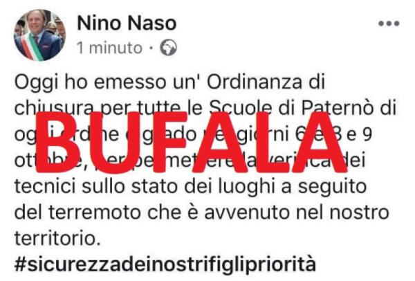 PATERNO': DOMANI SCUOLE REGOLARMENTE APERTE