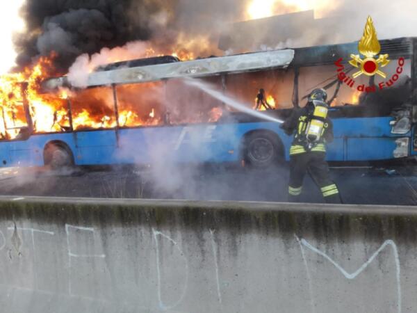 AUTOBUS IN FIAMME A PIANO TAVOLA