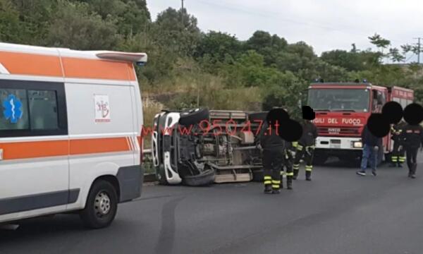 BIANCAVILLA: CAMION SI RIBALTA SULLA VECCHIA SS 121, AUTISTA MIRACOLOSAMENTE ILLESO