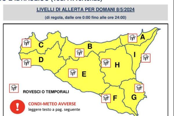PROTEZIONE CIVILE: IN ARRIVO PIOGGIA E TEMPORALI, ALLERTA GIALLA IN SICILIA