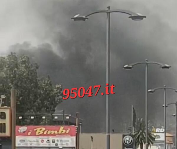 ENNESIMO INCENDIO IN VIA ZENIA A MISTERBIANCO, DENSA NUBE NERA IN CIELO