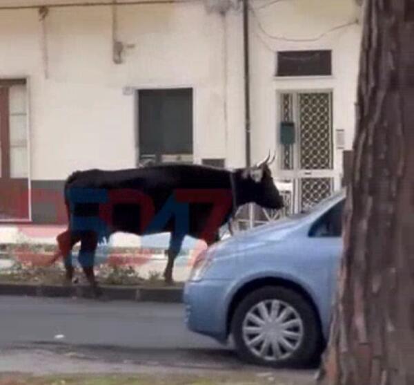DOPO LA VOLPE , ARRIVANO LE SEGNALAZIONI DELLA MUCCA CHE VAGA PER LE VIE DI PATERNO'