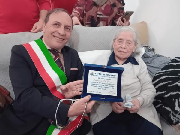 PATERNO' IN FESTA, NONNA FRANCESCA COMPIE 100 ANNI. IL SINDACO: "AUGURI ALLA DOLCISSIMA CENTENARIA DELLA NOSTRA COMUNITÀ"
