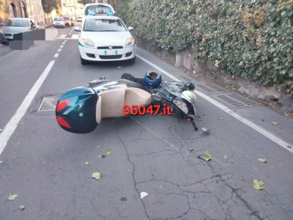 GRAVE INCIDENTE IN VIA ROMA A BATTIATI: PIAGGIO BEVERLY SI SCHIANTA CONTRO UNO SPECCHIO PARABOLICO