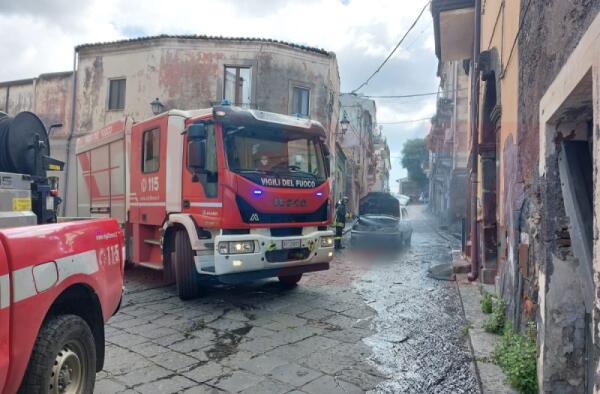 INCIDENTE A PATERNÒ: AUTO IN FIAMME IN VIA MONCADA, CONDUCENTE IN SALVO