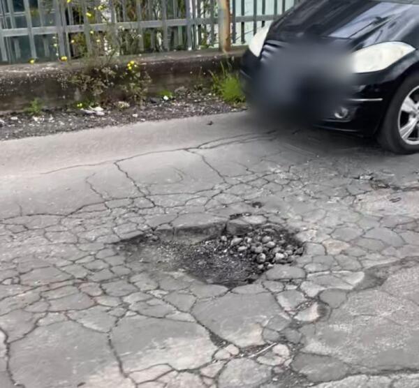 PATERNÒ, PERICOLOSA BUCA NEI PRESSI DEL PALAZZO DI FERRO: “PER POCO NON CADEVO COL MOTORINO”