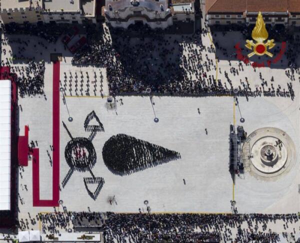 A 16 ANNI DAL TERREMOTO, I VIGILI DEL FUOCO RICREANO LA FIAMMA NELLA PIAZZA DEL DUOMO DELL’AQUILA