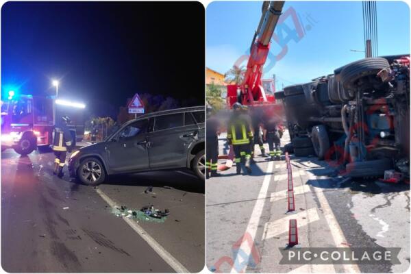 Auto distrutta nella notte, camion ribaltato in mattinata : due incidenti nel comprensorio