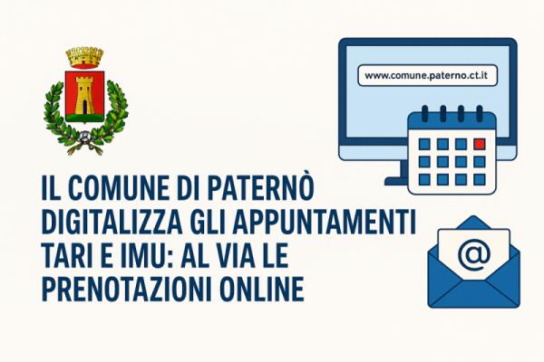 IL COMUNE DI PATERNÒ DIGITALIZZA GLI APPUNTAMENTI TARI E IMU: AL VIA LE PRENOTAZIONI ONLINE