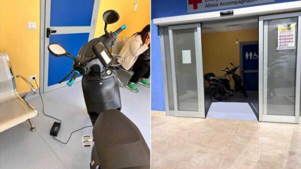 MESSINA. ENTRA COL MOTORINO ELETTRICO IN PRONTO SOCCORSO E LO METTE SOTTO CARICA NELLA SALA D'ATTESA