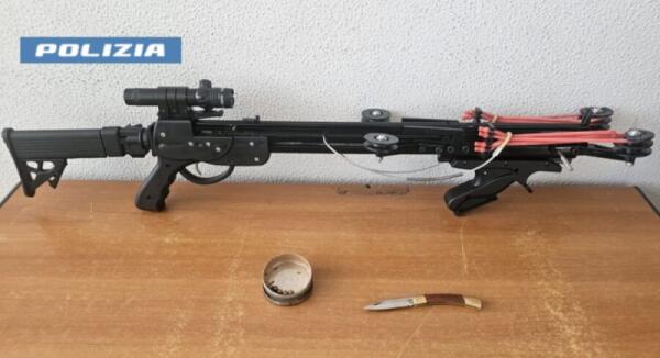 CATANIA. PASSEGGIA PER STRADA CON UNA BALESTRA SOTTO UNA COPERTA: INTERVIENE LA POLIZIA