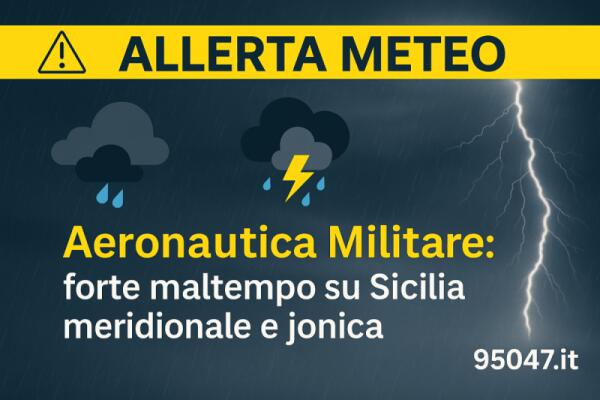 Sicilia, allerta Aeronautica Militare: forte maltempo tra stasera e domani sulla fascia meridionale e jonica