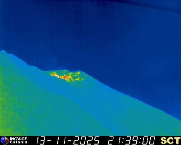 Stromboli, flusso lavico in corso nella parte alta della Sciara del Fuoco