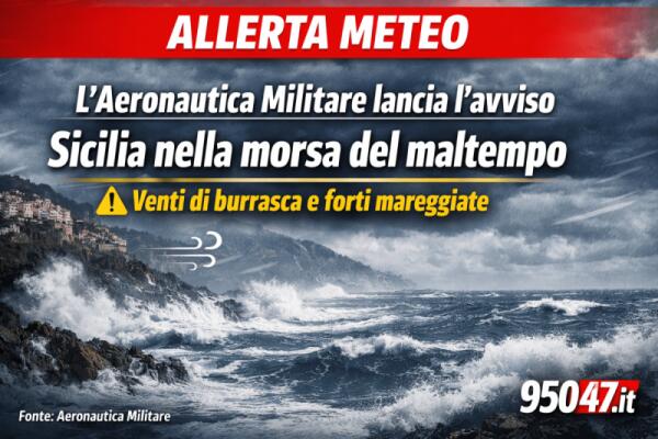 Allerta Meteo, l’Aeronautica Militare lancia l’avviso: Sicilia nella morsa del maltempo, venti di burrasca e mareggiate