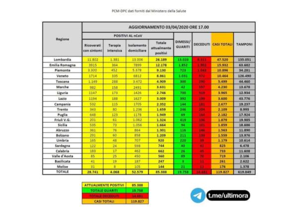BILANCIO ITALIA: CASI ATTUALI: 85.388 (+2.339) • MORTI: 14.681 (+766)