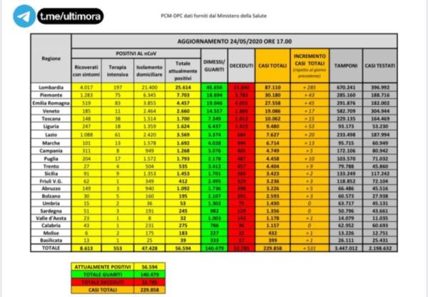 IN ITALIA 531 NUOVI CASI. SONO 50 I MORTI NELLE ULTIME 24 ORE LA LOMBARDIA: NESSUN DECESSO SEGNALATO