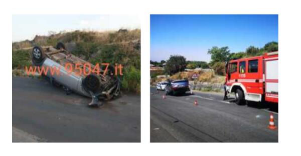 PATERNÒ: AUTO SI RIBALTA IN VIA MESSINA