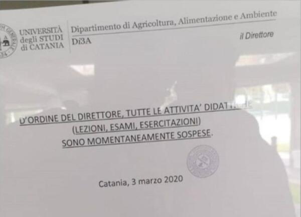 CORONAVIRUS, 3 PROF POSITIVI: CHIUSA FACOLTÀ AGRARIA A CATANIA