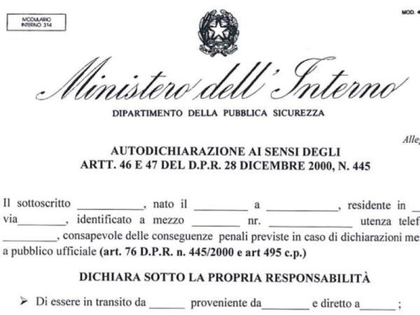 CORONAVIRUS, L’AUTOCERTIFICAZIONE PER LA ZONA DI SICUREZZA: IL MODULO PER SPOSTARSI ECCO COME FUNZIONA