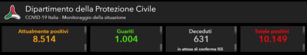 NUMERO COMPLESSIVO DEI CONTAGIATI - COMPRESE LE VITTIME E I GUARITI - HA SUPERATO I DIECIMILA: 10.149, LE VITTIME SONO COMPLESSIVAMENTE 631: 68 IN PIÙ RISPETTO AD IERI