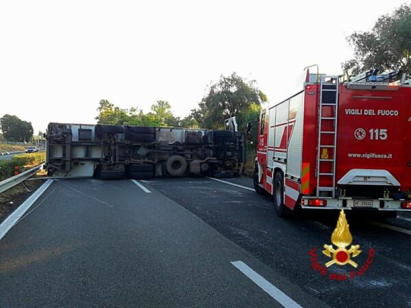 CAMION SI RIBALTA SULL'A18. USCITA OBBLIGATORIA ACIREALE