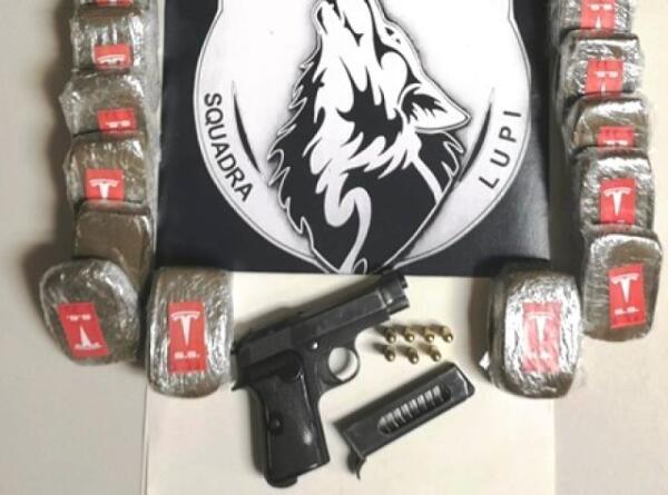 CATANIA. I LUPI A SAN GIORGIO “FIUTANO” HASHISH ED UNA PISTOLA: UN ARRESTO