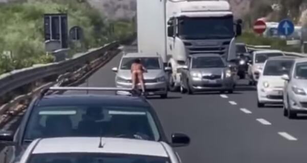 PRENDE IL SOLE NUDO SULLA CATANIA-SIRACUSA IN MEZZO AL TRAFFICO, TSO PER UN EXTRACOMUNITARIO