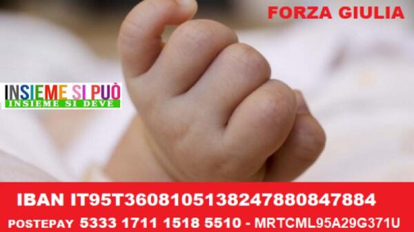 PATERNO’: CONTINUA LA GARA DI SOLIDARIETÀ PER LA PICCOLA GIULIA AFFETTA DA UNA GRAVE MALATTIA DEL FEGATO, HA BISOGNO DI TUTTI NOI