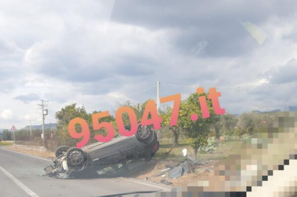 AUTO SI RIBALTA SULLA VECCHIA SS121 IN TERRITORIO DI SANTA MARIA DI LICODIA