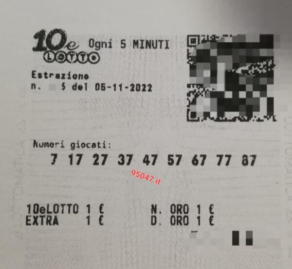 PATERNO’: LA FORTUNA ARRIVA COL 10 E LOTTO, VINCITA DI 20.000 EURO
