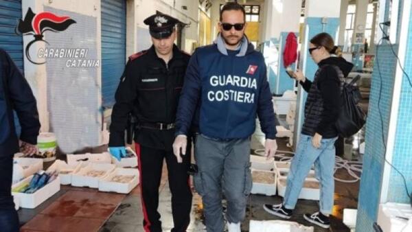 RIPOSTO, VENDEVA PESCATO E CROSTACEI ABUSIVAMENTE AL MERCATO ITTICO, 60ENNE DENUNCIATO