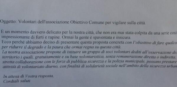 Obiettivo Comune: "Pronti a presidiare i luoghi pubblici"